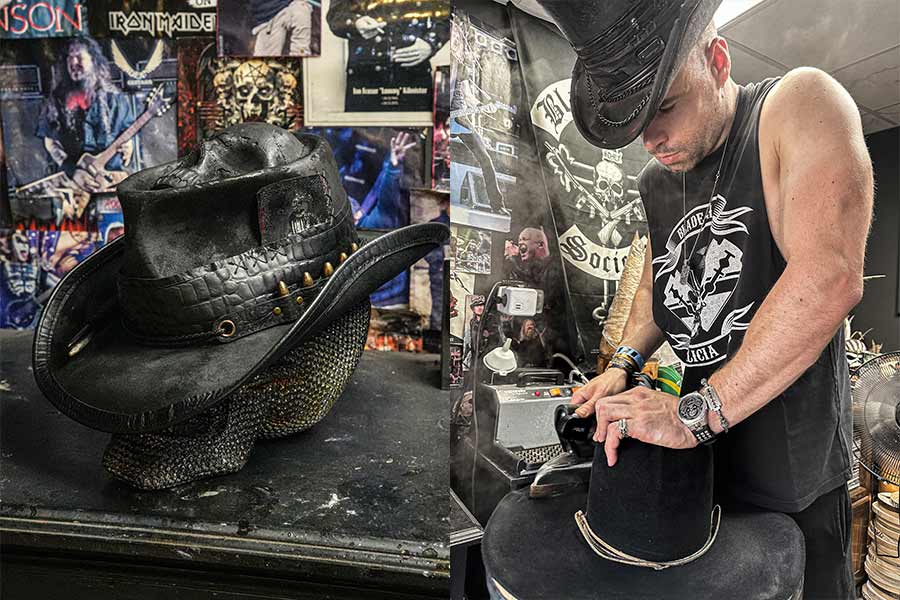 Depuis ses ateliers galiciens, Blade Hats coiffe Marilyn Manson, Slash, Alex Terrible ou encore The Wu. Ses chapeaux ornés de lames de rasoir, de chaînes et de cuir brûlé sont devenus la signature de toute une scène musicale internationale. De notre côté, Flibustier façonne l’argent massif pour les pirates modernes. Cette rencontre entre deux artisans passionnés de métal (musique & matière) donne naissance aujourd'hui à la Mad Hatter Collection : trois pièces inspirées du vestiaire de Blade Hats – drapés théâtraux, chaînes pendantes, lames de rasoirs acérées – et rehaussées de détails gothiques rappelant la cathédrale de Saint-Jacques-de-Compostelle, étape mythique de nos voyages.