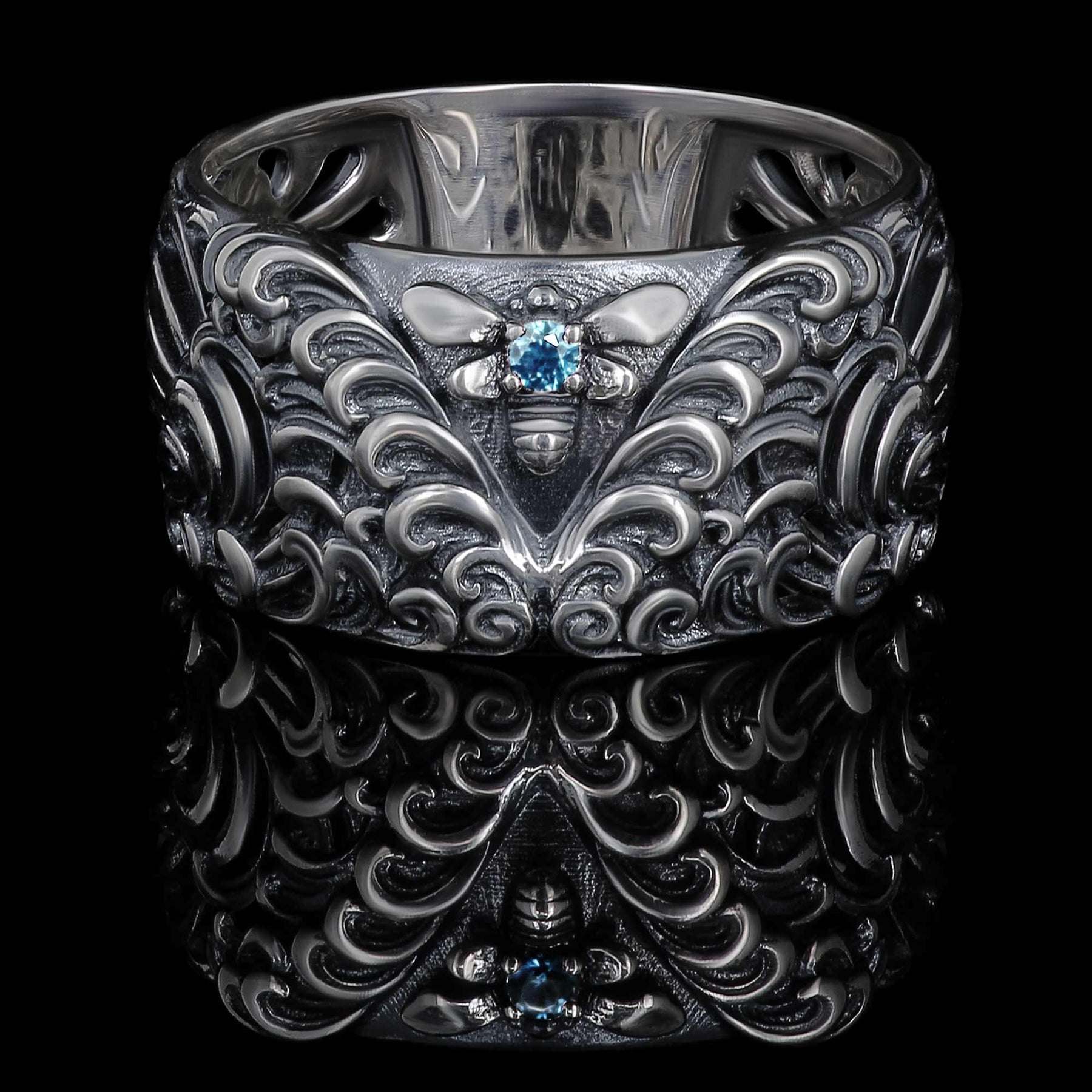 DIE WELLEN – „Calm Sea“ verkörpert jenen Moment der Stille, in dem noch alles unter Kontrolle ist. Der Ring aus massivem Silber ist mit tiefen, fließenden Wellen verziert.