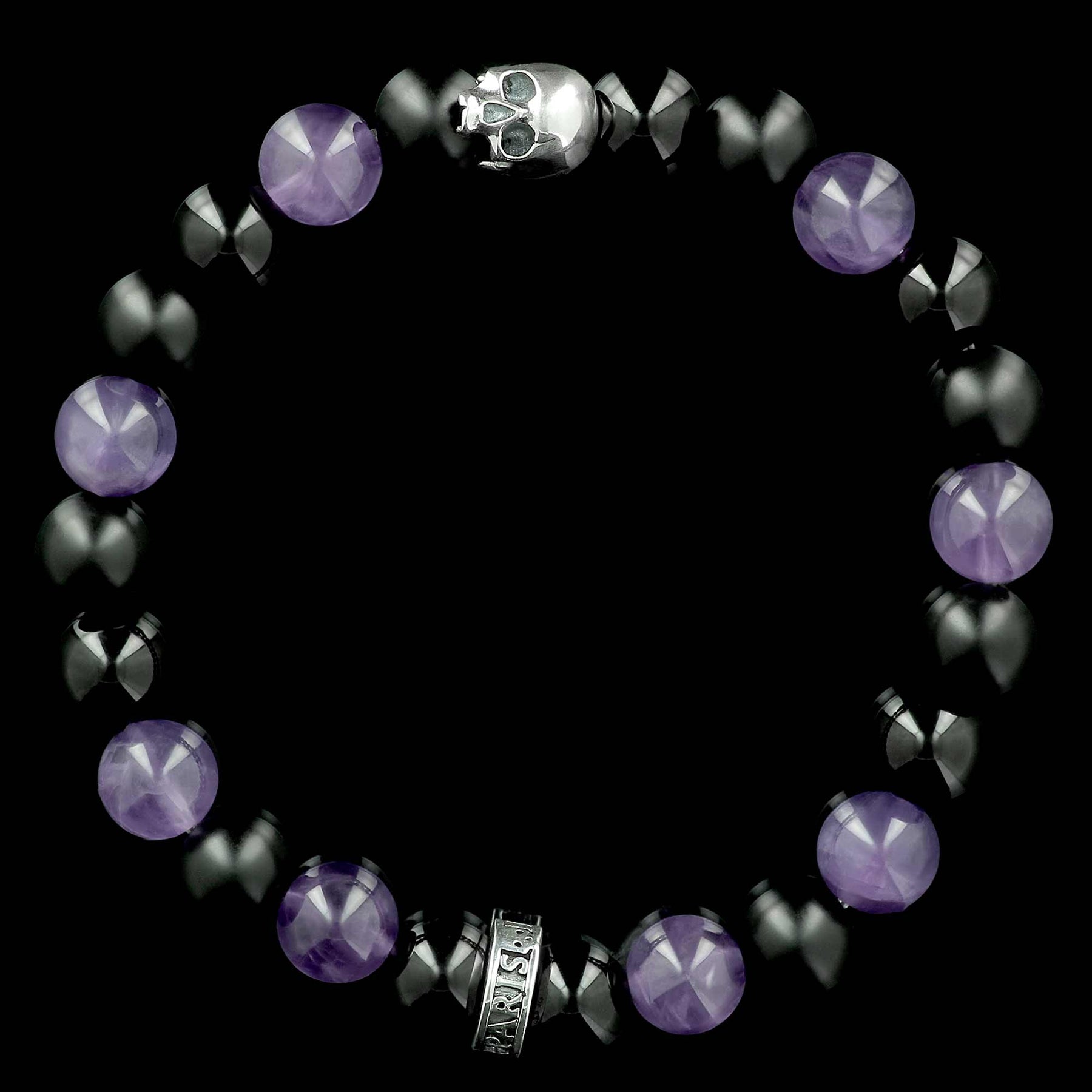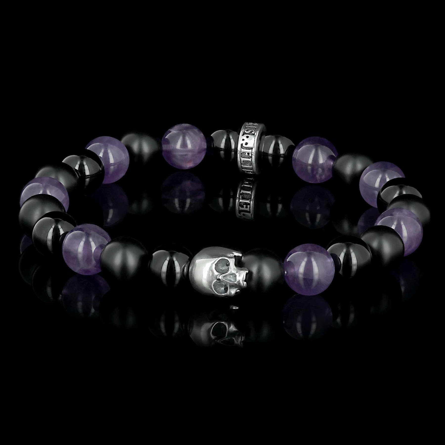 Noir profond, violet hypnotique; notre série limitée rend hommage à l’esthétique Mercredi Addams : un mix d’onyx mat & poli ponctué d’améthystes naturelles. Des pièces goth-chic, minimalistes, à porter seules ou en superposition.
